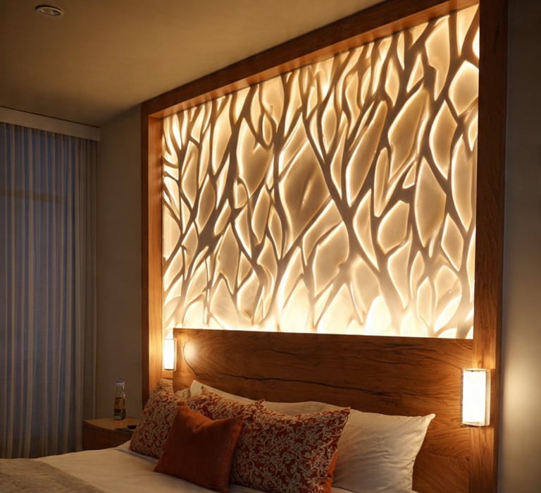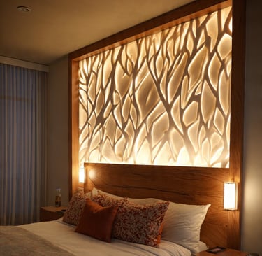Headboard wall OR statement light OR oversized art.