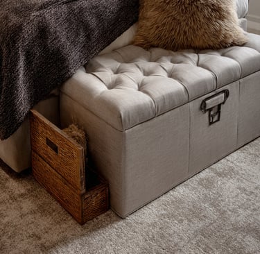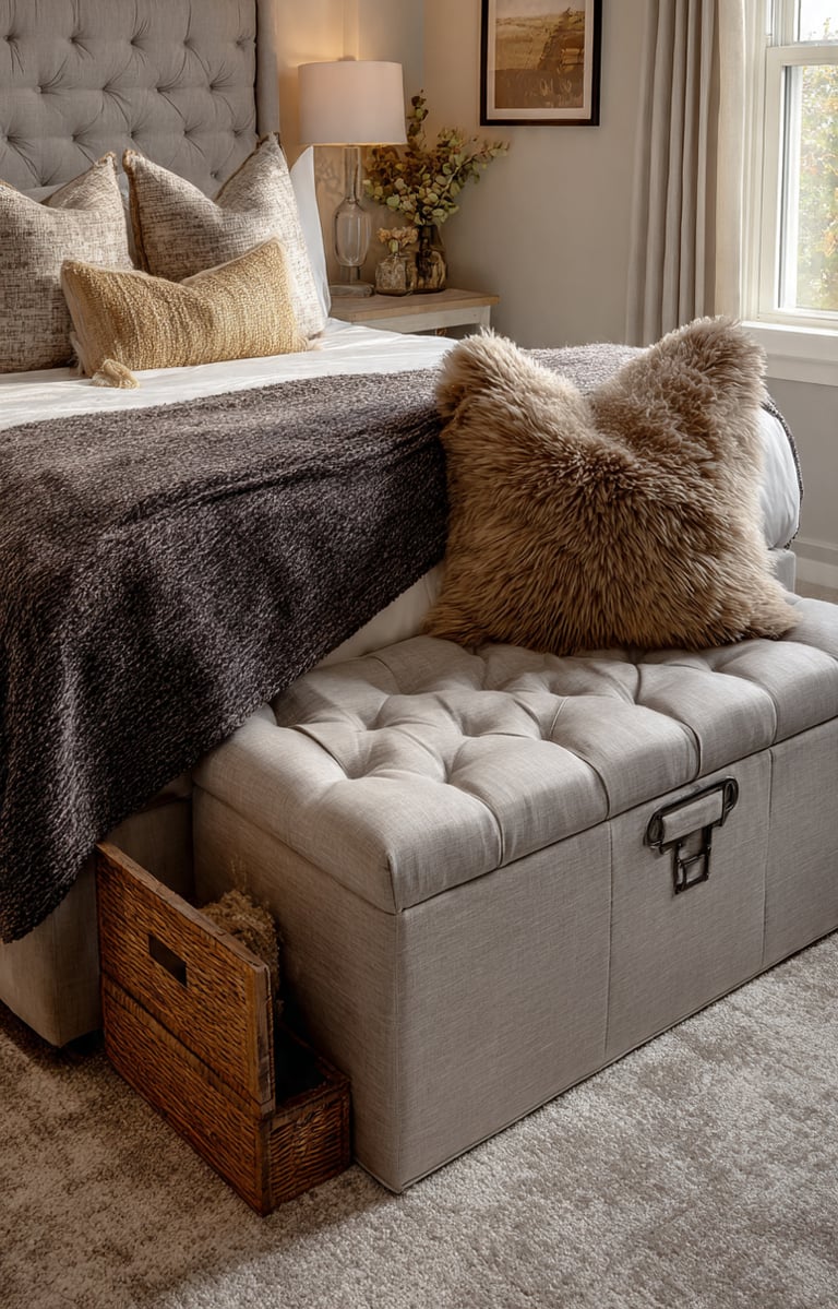 Storage bench at the foot of the bed