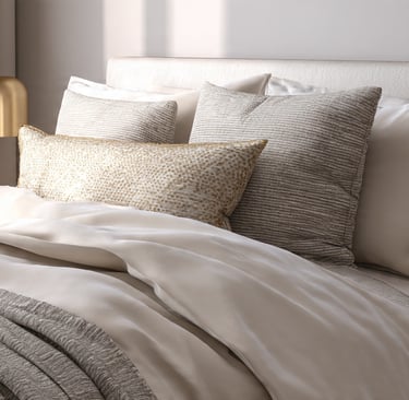upholstered headboard + layered linens