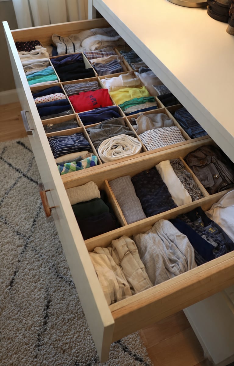 Drawer organizers inside furniture